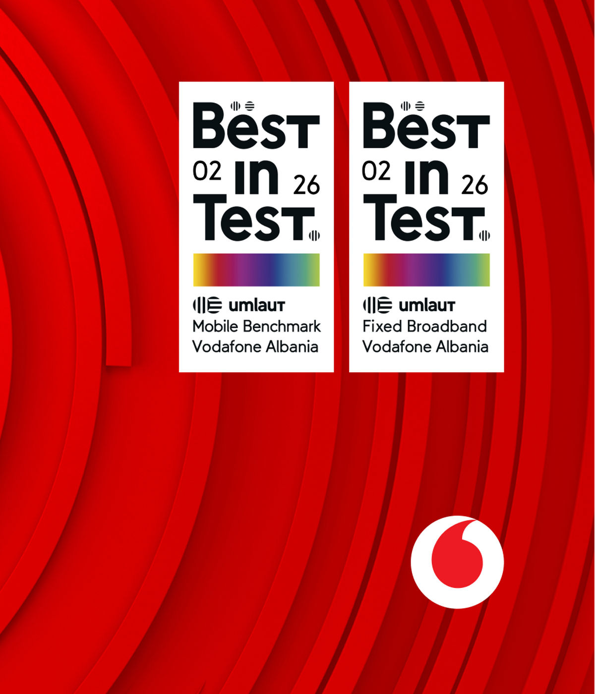 Best in Test. Vodafone Albania is certified as the best mobile and fixed network from the international company, umlaut, March 2026. Best in Test. Vodafone Albania is certified as the best mobile network from the international company, umlaut, May 2025. Best in Test. Vodafone Albania has been certified as the best mobile network for 6 consecutive years by the international company umlaut, February 2023. Furthermore, based on the Statistical Indicators of AKEP for Q2 2023, Vodafone has the highest number of broadband access users in 3G/4G networks. Best in Fixed. Vodafone Albania has been awarded the highest overall reliability score for fixed networks, according to nationwide measurements, based on the Fixed Network Audit Report in Albania for 2023 by umlaut. Ultra-speed in the fixed network as part of GPON operators, capable of reaching speeds up to 2.5Gbps. Vodafone GigaFibra is recognized by MedUX as the fixed network with the best quality of experience across all categories: upload, download, gaming, streaming, data & OTT.